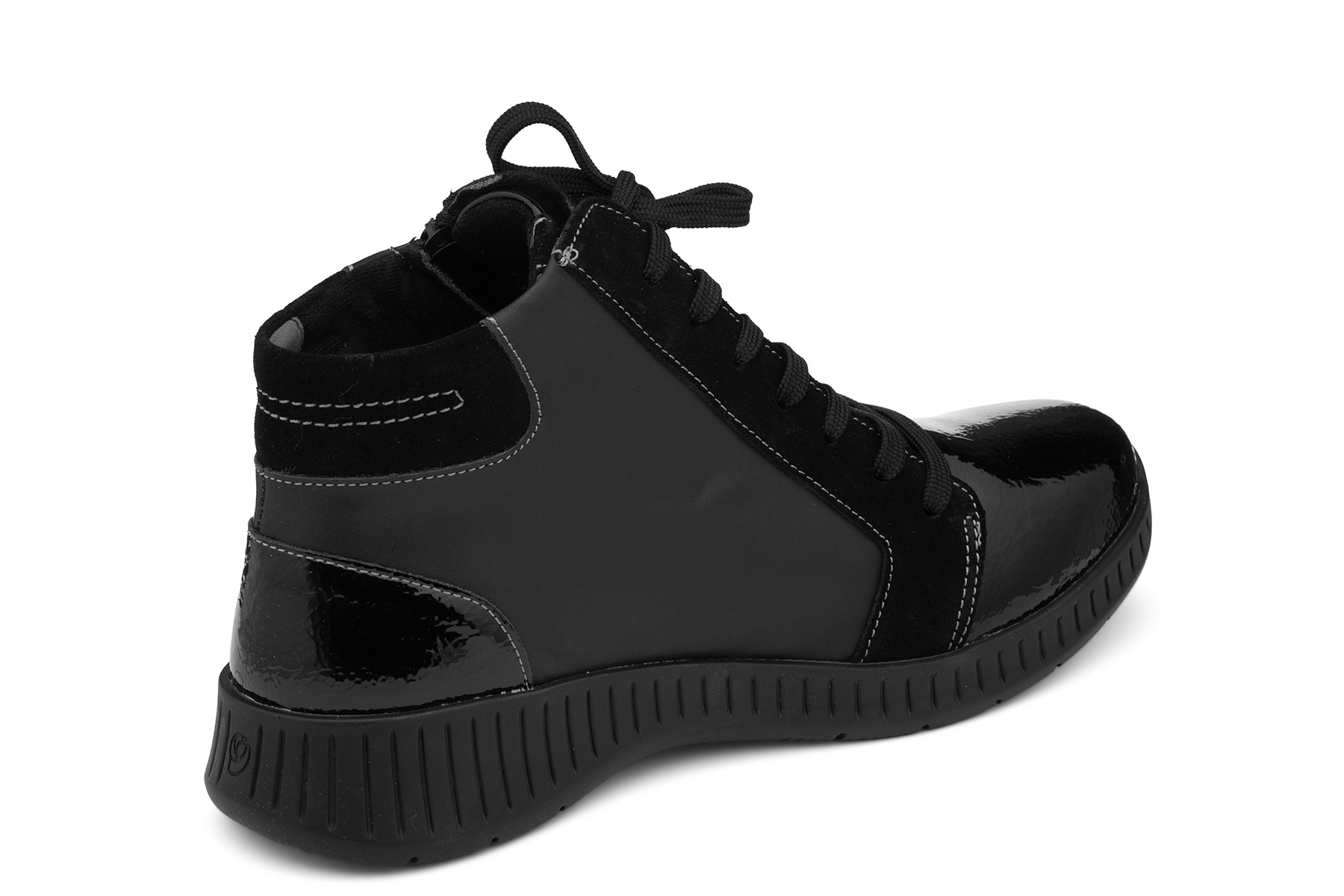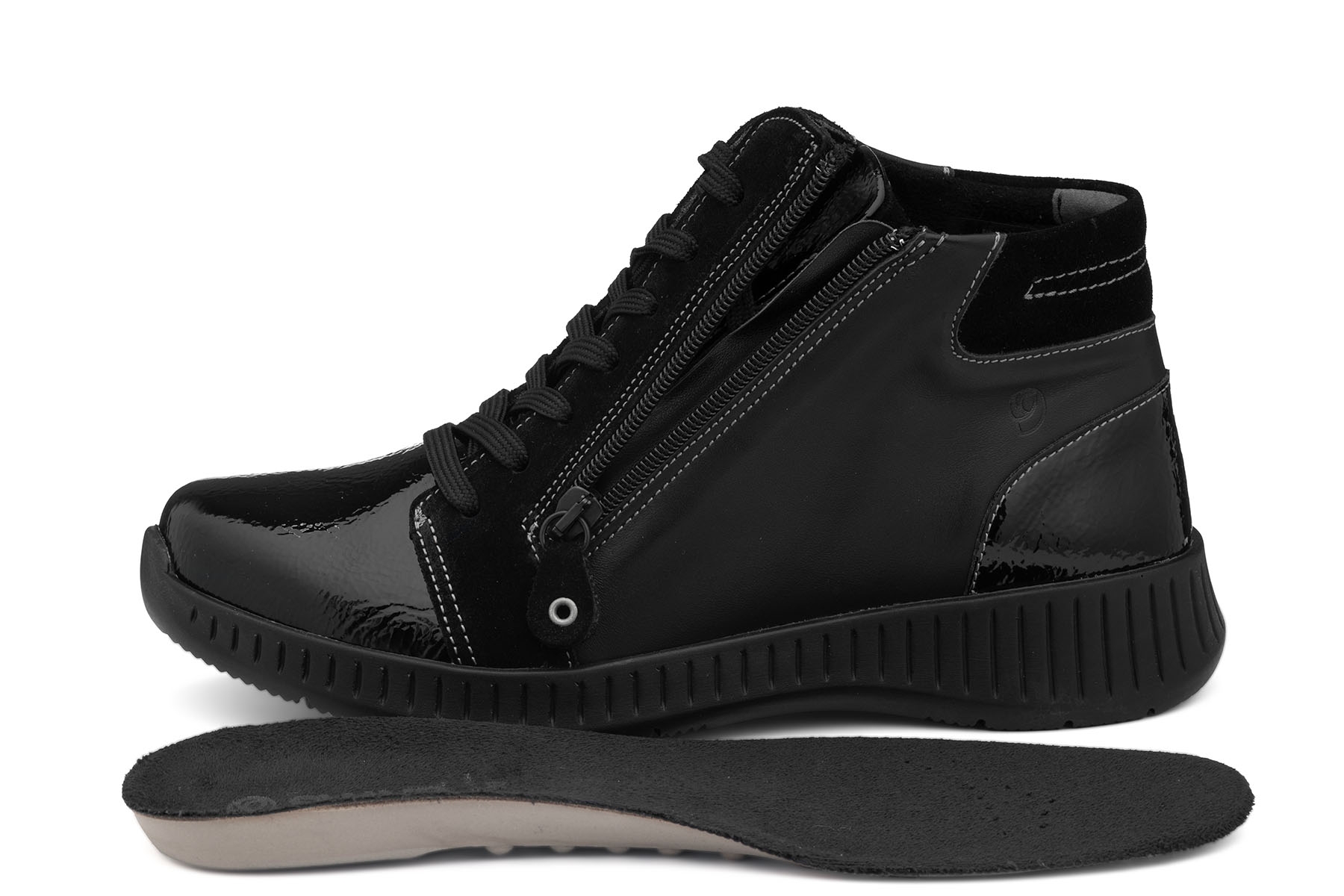 Suave Comfortabel 990708 01 wygodne, zdrowotne botki damskie wykonane ze skóry naturalnej; elastyczne, antypoślizgowe podeszwy; wyjmowane wkładki profilowane; boczny suwak ułatwiający zakładanie; tęgość K - polecane na stopy szerokie.