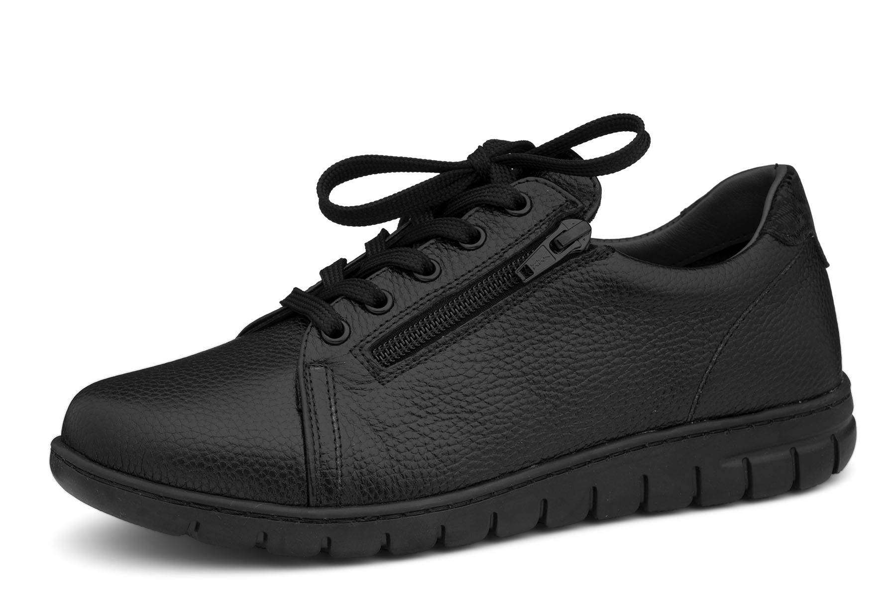 Comfortabel 951304-01 wygodne damskie półbuty wykonane ze skóry naturalnej ; wyjmowane, skórzane wkładki - można je zastąpić innymi na przykład ortopedycznymi; boczny suwak ułatwiający zakładanie; elastyczne, antypoślizgowe podeszwy; tęgość K - na stopy szerokie.