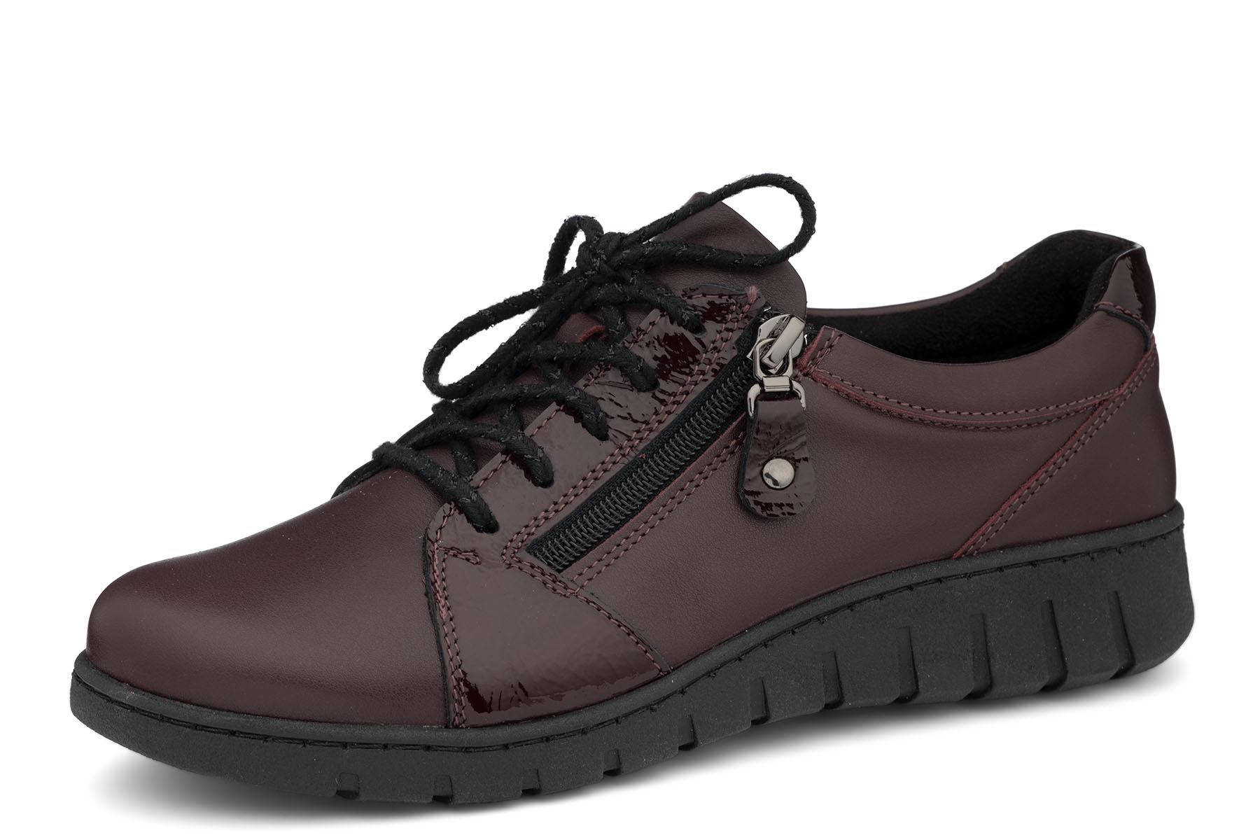 Bailar Adela wygodne półbuty damskie wykonane ze skóry naturalnej w kolorze bordowym ; profilowane, amortyzujące wkładki z pianki pokryte mikrofibrą; elastyczne, antypoślizgowe podeszwy; tęgość H + K - na stopy szerokie.