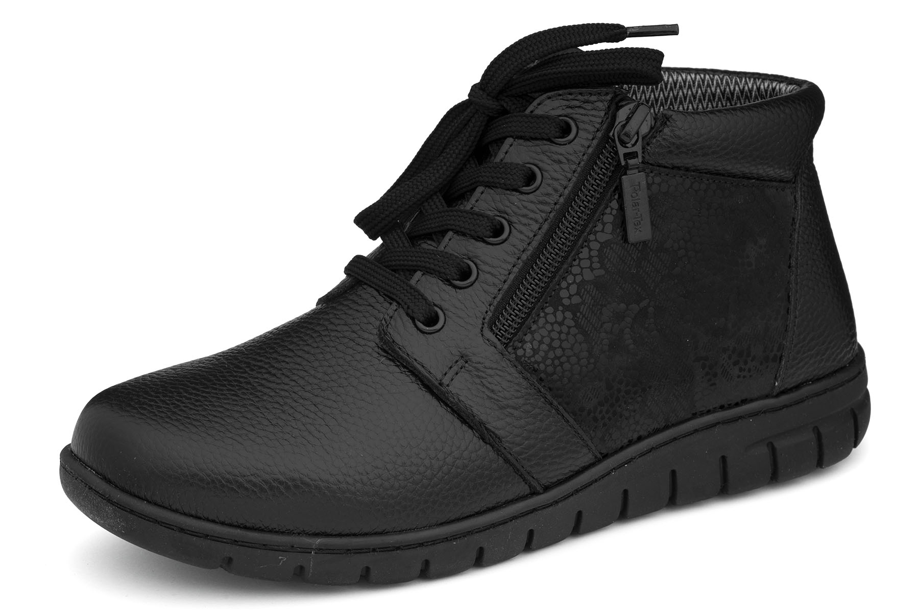 Comfortabel 990683 01 wygodne botki damskie wykonane ze skóry naturalnej; boczny suwak ułatwiający zakładanie; wyjmowane skórzane wkładki; lekkie, elastyczne antypoślizgowe podeszwy; tęgość K - polecane na stopy szerokie.