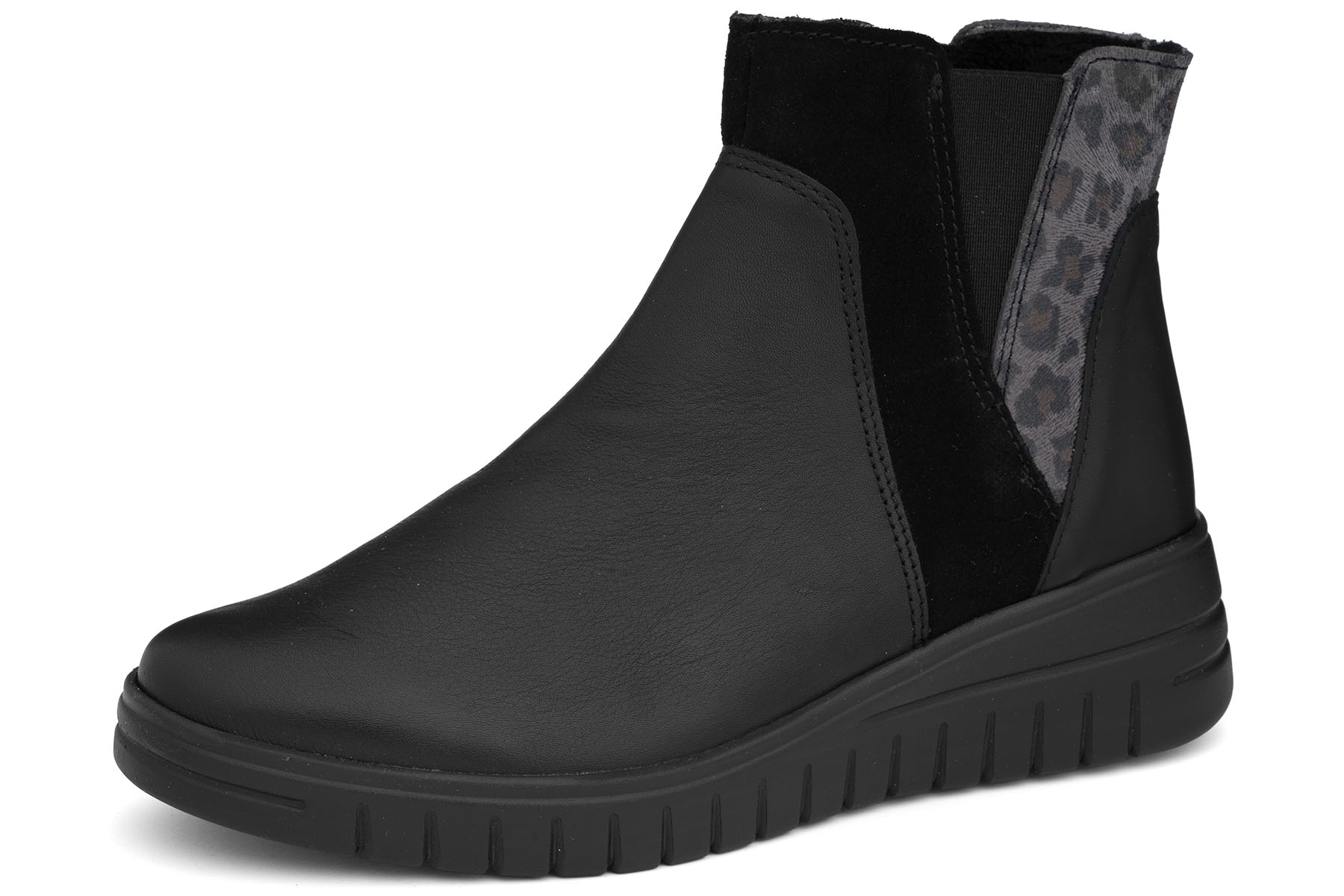 Comfortabel 990727 01 wygodne damskie botki wykonane ze skóry naturalnej; wyjmowane wkładki - można je zastąpić własnymi na przykład ortopedycznymi; boczny suwak ułatwiający zakładanie; lekko ocieplone polarem; elastyczne, antypoślizgowe podeszwy; tęgość H.
