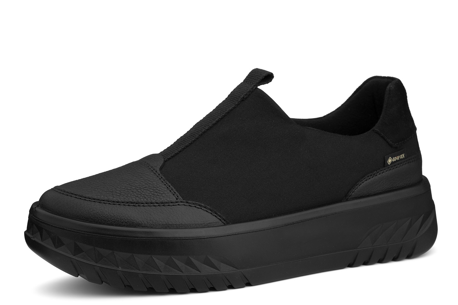 Ara Monaco 12-46706 01H High Soft wygodne półbuty damskie wykonane z połączenia skóry naturalnej i tkaniny, zabezpieczone nieprzemakalną membraną Gore-Tex; wyjmowane, amortyzujące wkładki - HighSoft Bamboo z pelotą na płaskostopie poprzeczne; lekkie, elastyczne, antypoślizgowe podeszwy; tęgość H - polecane na stopy szersze.