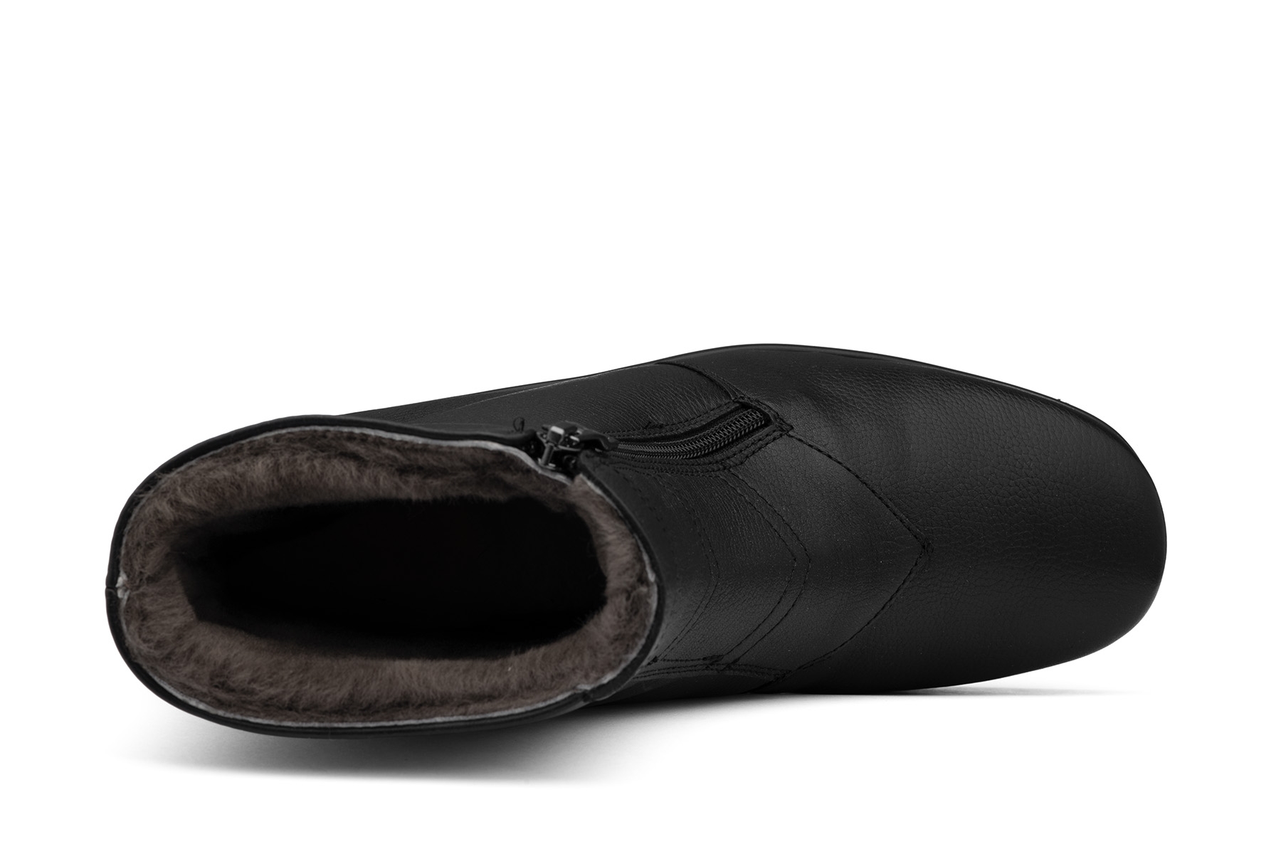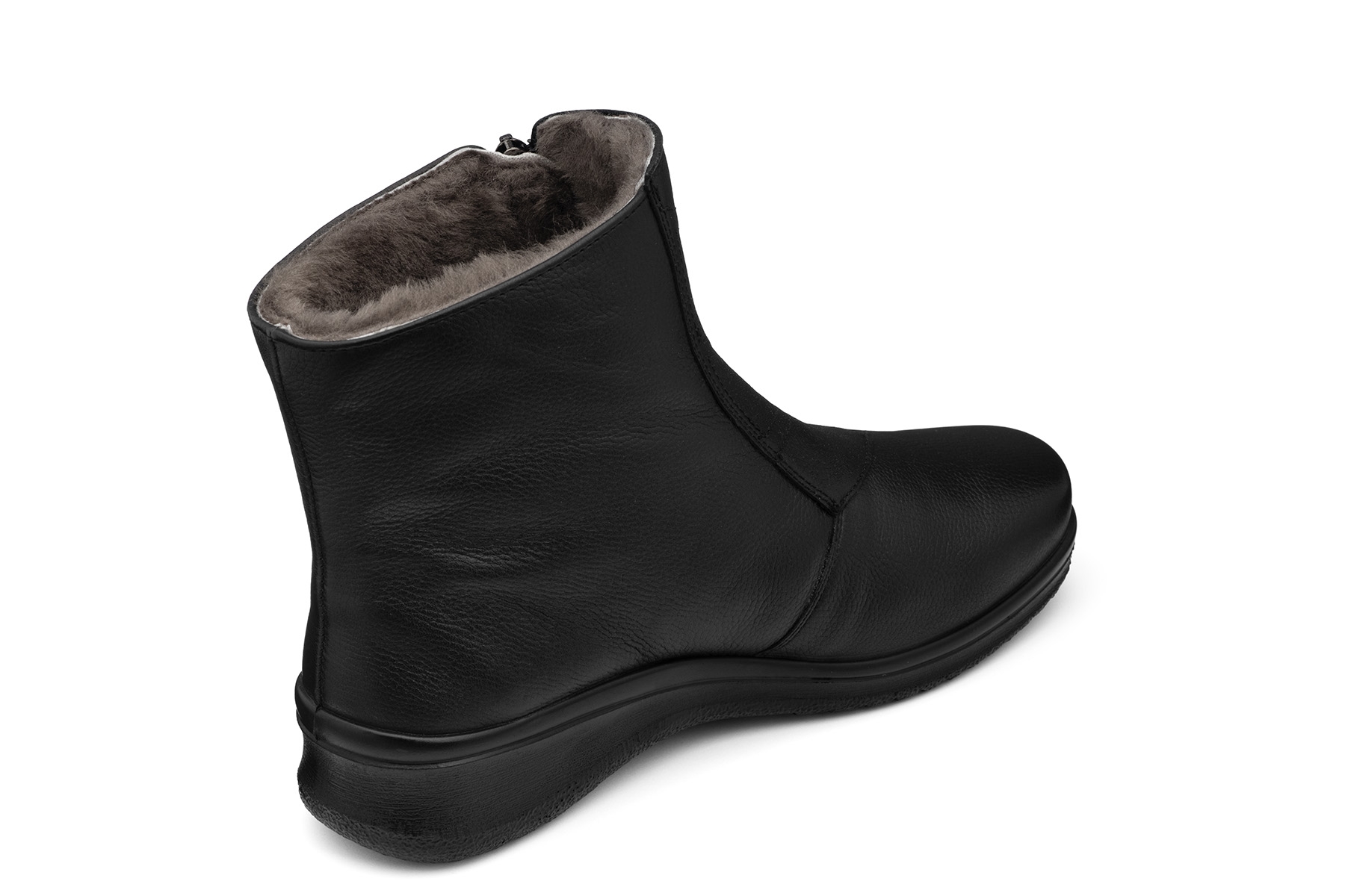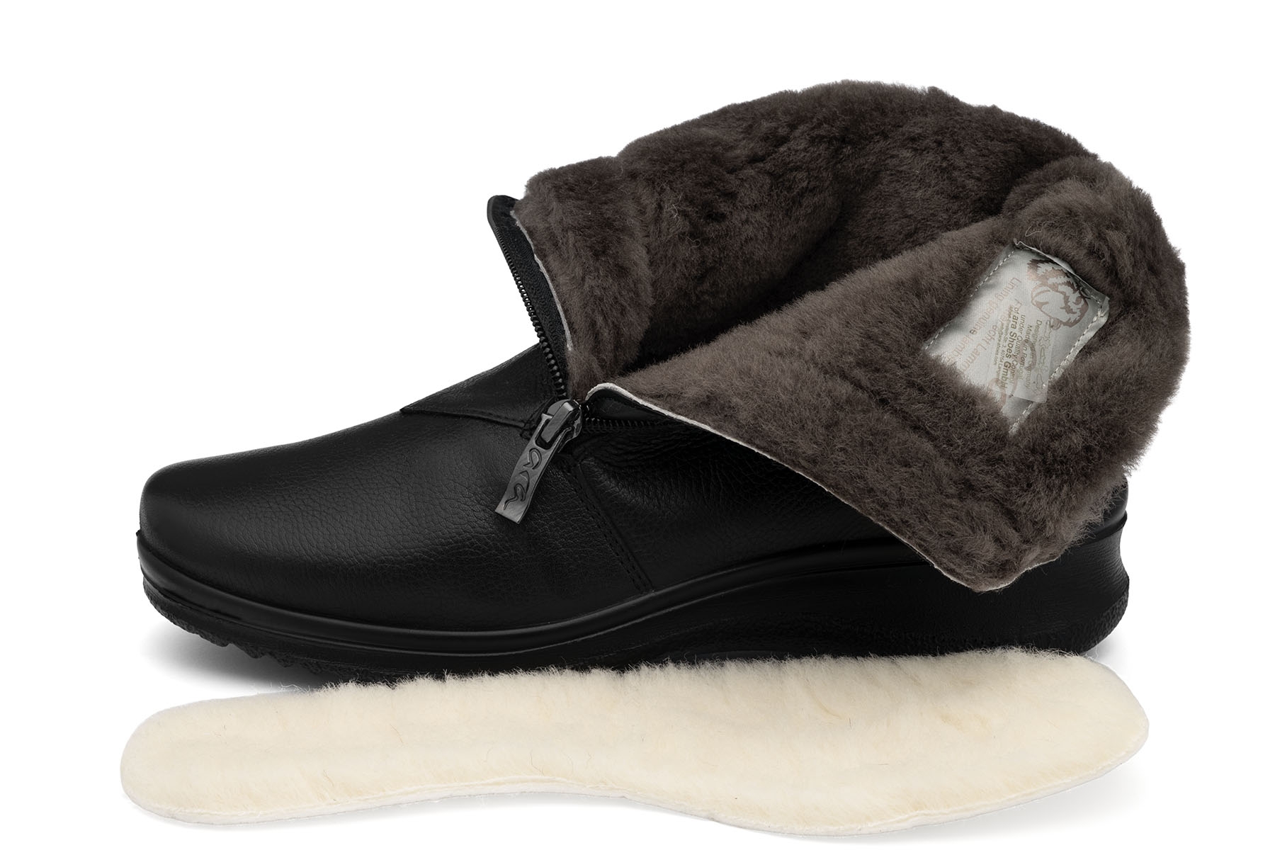 Ara Munchen 12-48539 61H wygodne damskie botki wykonane z połączenia skóry naturalnej - licowej; wyjmowane wełniane wkładki; ocieplone wełna owczą; lekkie, elastyczne, antypoślizgowe podeszwy; boczny suwak ułatwiający zakładanie; tęgość H - polecane na stopy szersze.