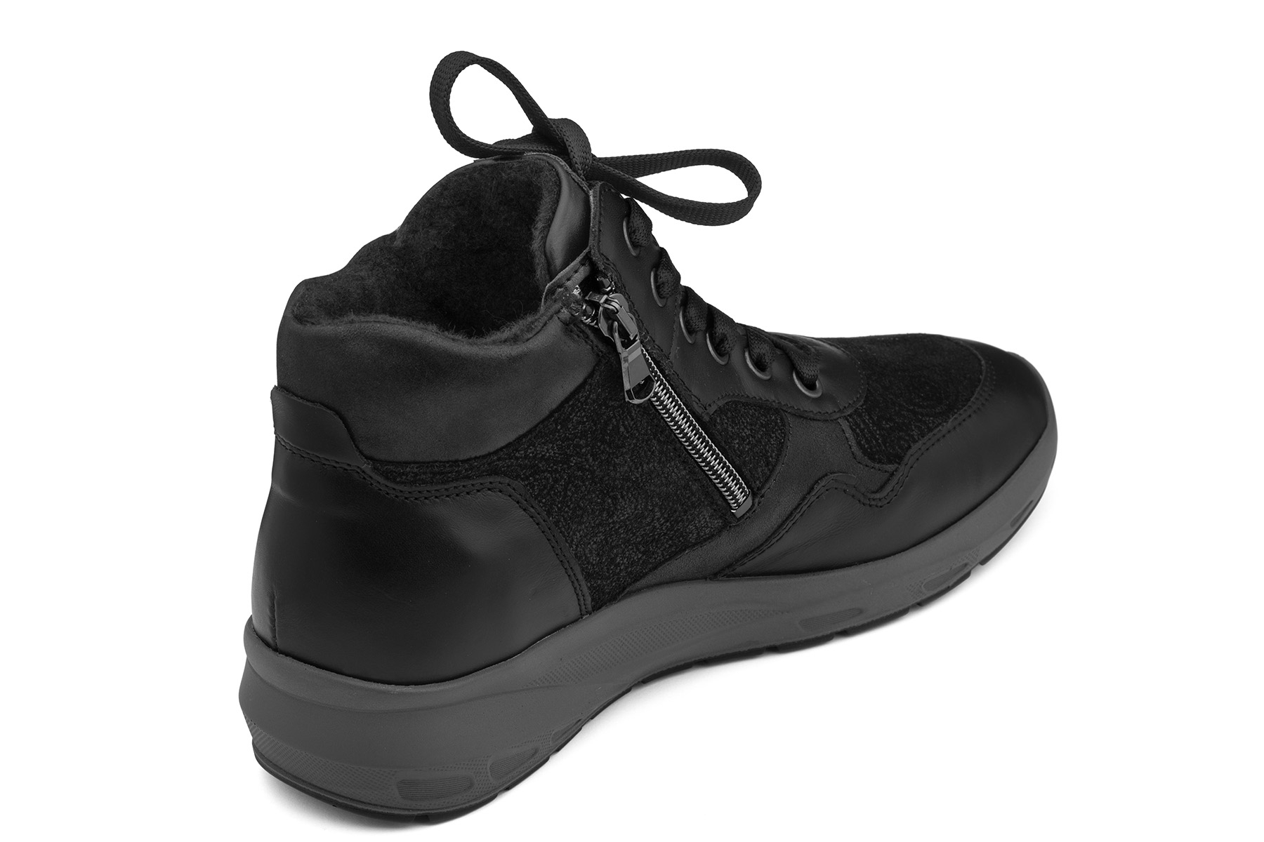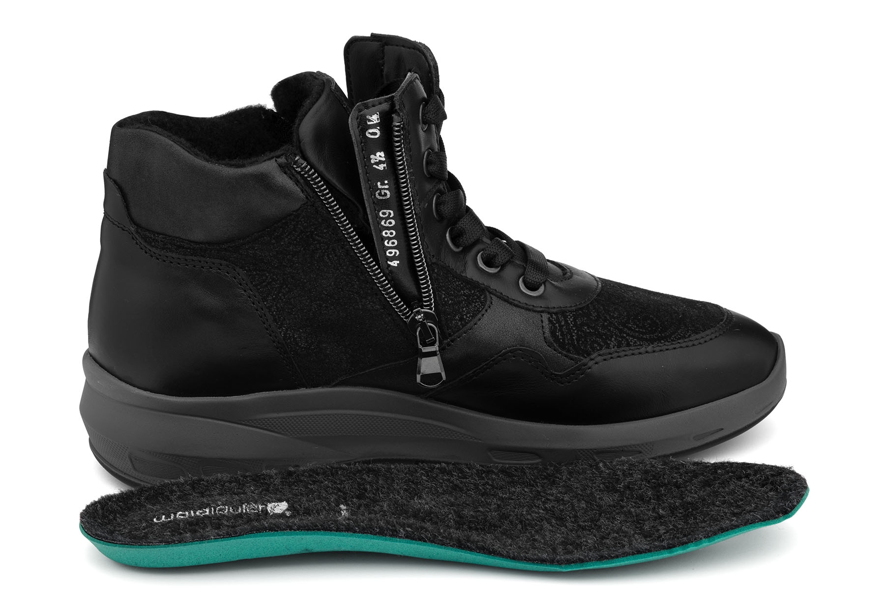 Waldlaufer M-Tonia 831802 501 0011 wygodne, zdrowotne botki damskie wykonane ze skóry naturalnej ; elastyczne, antypoślizgowe podeszwy; wyjmowane, filcowe wkładki profilowane na płaskostopie podłużne i poprzeczne ( można je zastąpić własnymi wkładkami na przykład ortopedycznymi ); suwaki z dwóch stron ułatwiające zakładanie;  lekko ocieplone tkaniną wełnianą; tęgość M - na stopy bardzo szerokie z haluksami i innymi zwyrodnieniami, zalecane dla cukrzyków.