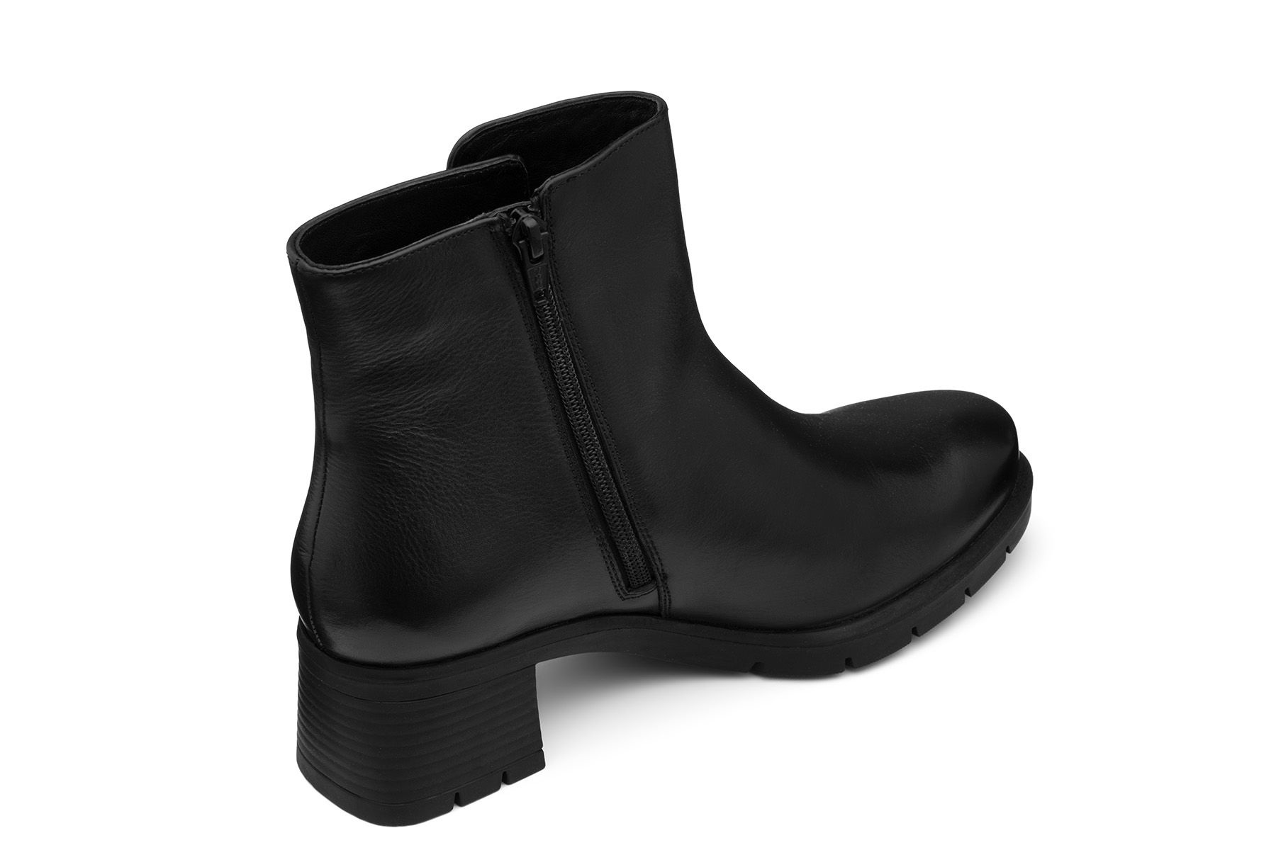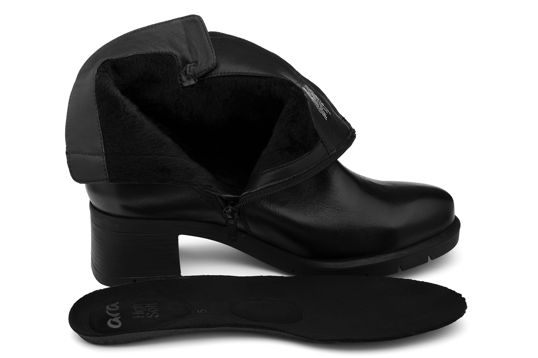 Ara Prag 12-59218 01H wygodne botki damskie wykonane z miękkiej skóry naturalnej - licowej; wyjmowane, amortyzujące wkładki - HighSoft z pelotą na płaskostopie poprzeczne; elastyczne, antypoślizgowe podeszwy; stabilne obcasy; lekko ocieplone futerkiem; tęgość H.