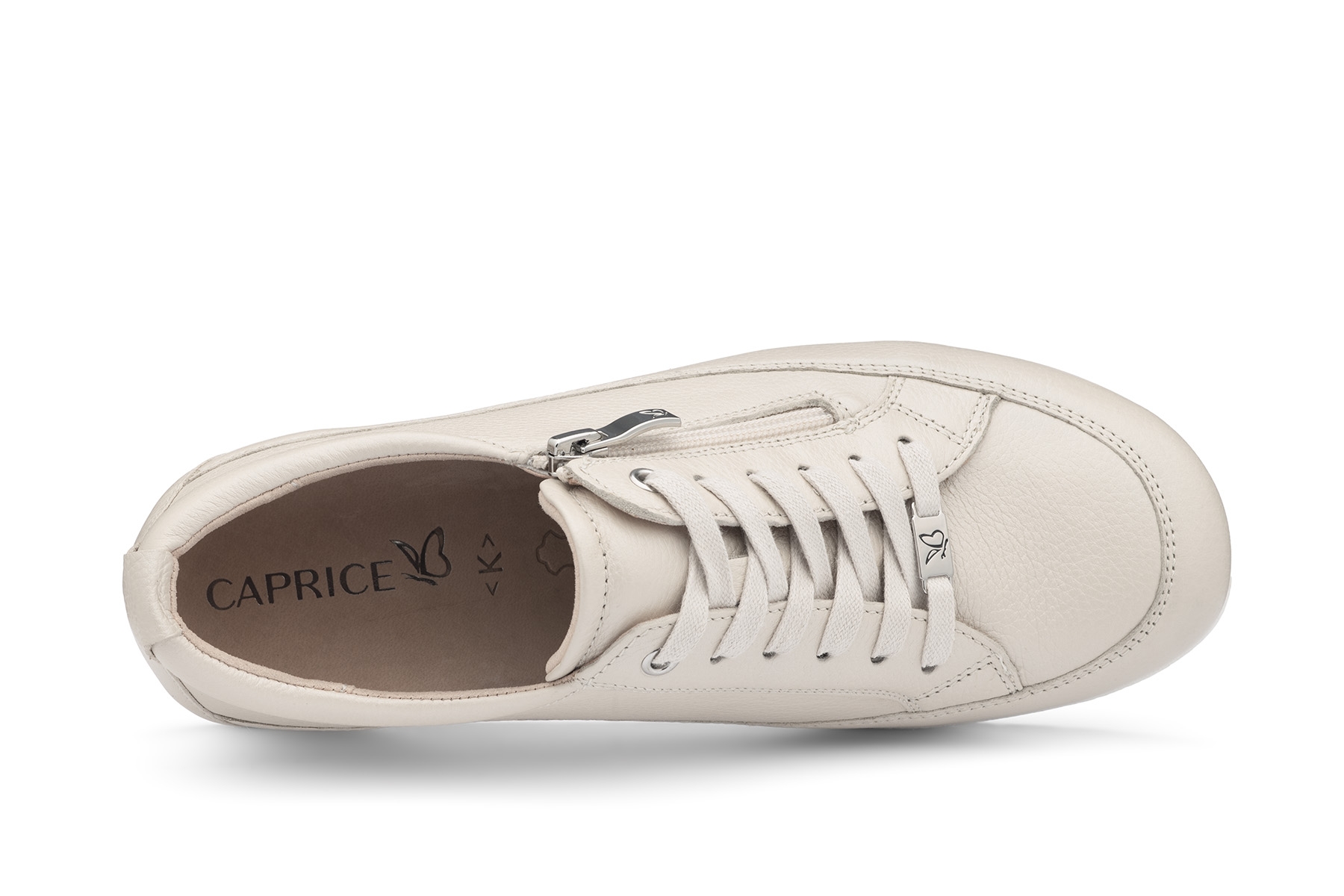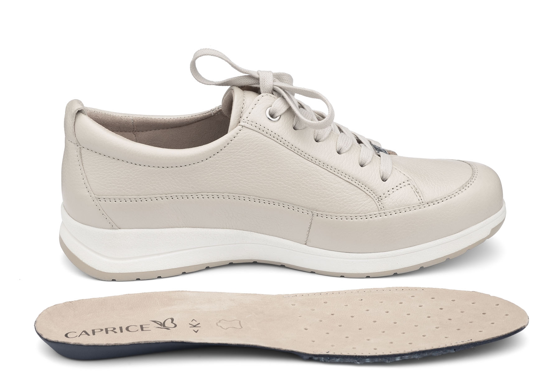 Caprice 9-23727-46 119 wygodne damskie półbuty wykonane ze skóry naturalnej - licowej; wyjmowane skórzane wkładki; elastyczne, antypoślizgowe podeszwy; suwak ułatwiający zakładanie; tęgość K - na stopy szerokie.