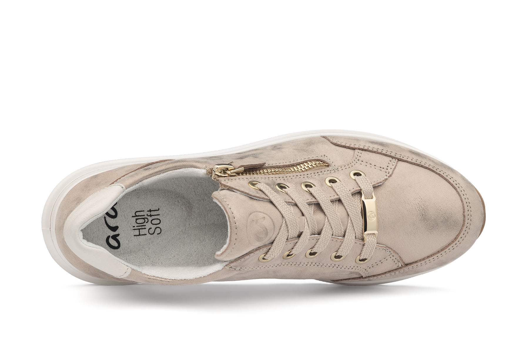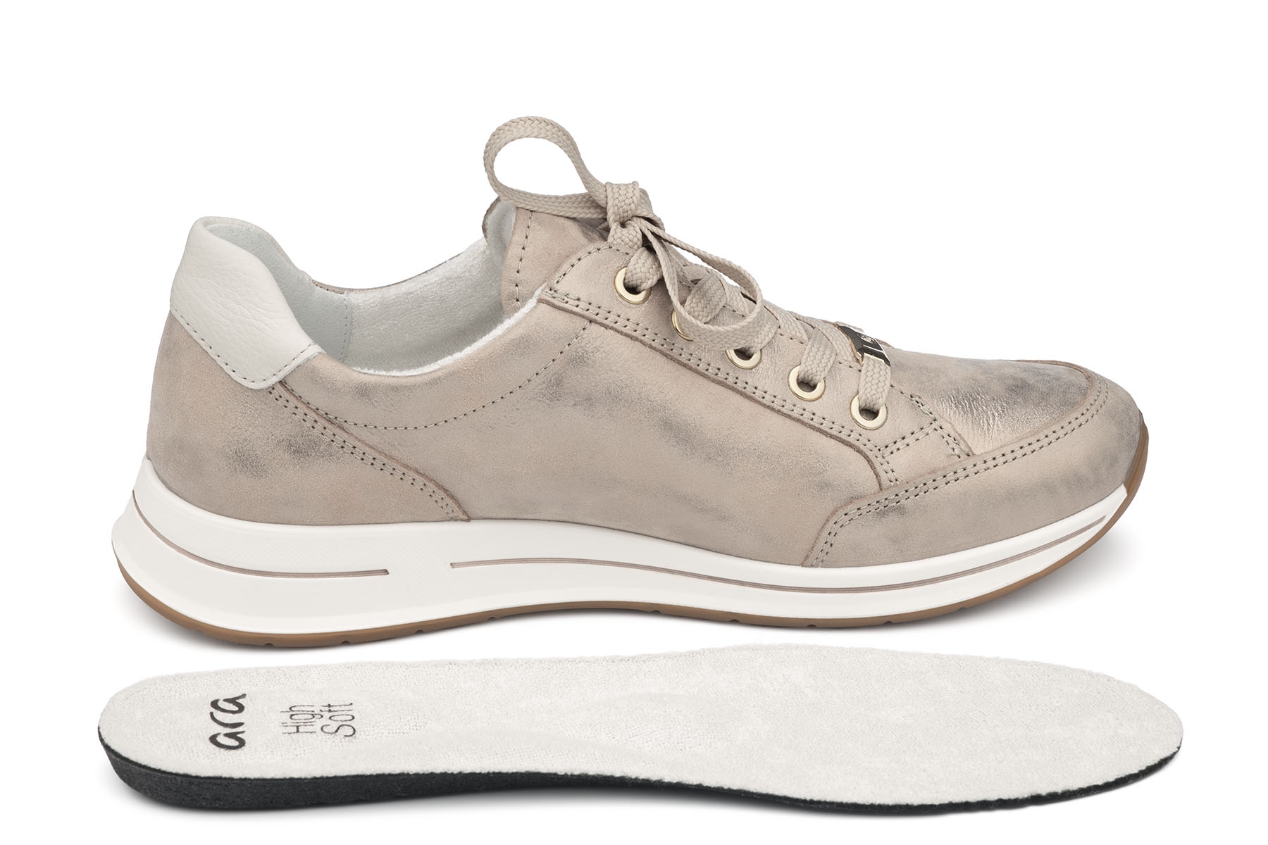 Ara Osaka 12-54801 75H High Soft wygodne półbuty damskie wykonane ze skóry naturalnej; wyjmowane, amortyzujące wkładki - HighSoft Bamboo z pelotą na płaskostopie poprzeczne; lekkie, elastyczne, antypoślizgowe podeszwy; suwak ułatwiający zakładanie; tęgość H - polecane na stopy szersze.