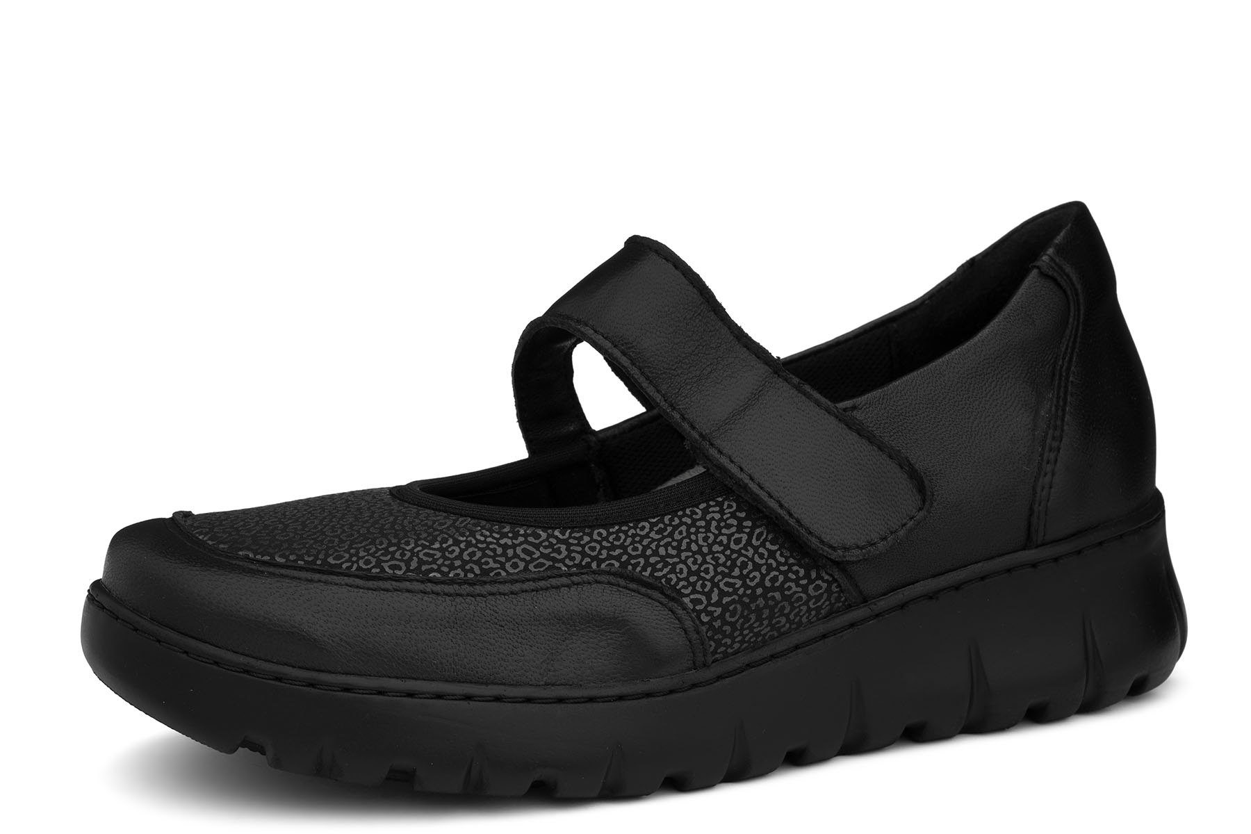 Axel Comfort wzór 1984 to wygodne damskie półbuty wykonane z połączenia miękkiej skóry naturalnej - licowej w kolorze czarnym i elastycznej tkaniny. Buty polskiego producenta posiadają lekkie, antypoślizgowe podeszwy oraz wyjmowane wkładki lekko profilowane. Stretchowa wstawka na wysokości haluksów. Tęgość H - polecane na stopy szersze na przykład z haluksami.