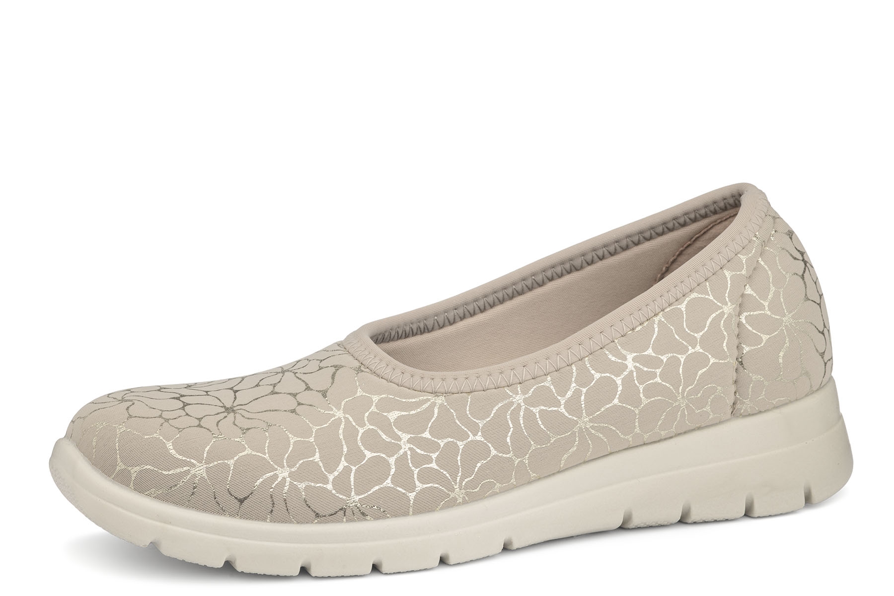 Sanital Flex SC143.13 BEIGE wygodne półbuty damskie wykonane z elastycznej tkaniny; lekkie, amortyzujące podeszwy; wyjmowane wkładki; dzięki stretchowej tkaninie pasują na stopy z haluksami, palcami młoteczkowatymi; tęgość H - na stopy szersze. Polecane dla cukrzyków.