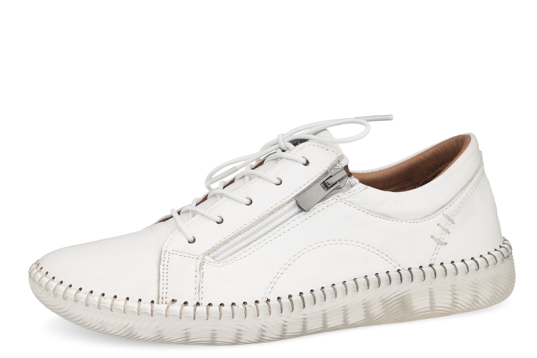 Manitu wzór 850118-03 wygodne półbuty damskie wykonane z miękkiej skóry naturalnej ; wyjmowane, miękkie, skórzane lekko profilowane wkładki; suwak ułatwiający zakładanie; elastyczne, antypoślizgowe podeszwy; polecane na stopy o średnio-szerokiej tęgości.