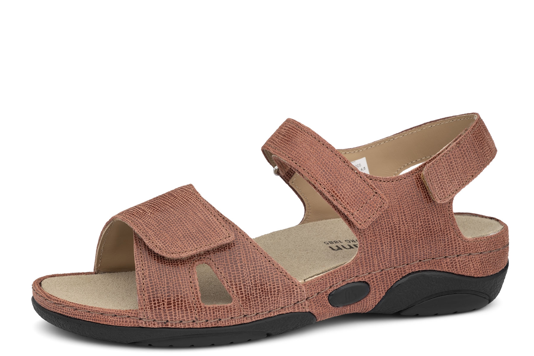 Berkemann Jacklyn 01605-458 wygodne, zdrowotne sandały damskie wykonane z najwyższych jakościowo materiałów, wierzch skóra naturalna; wyjmowane, skórzane wkładki ortopedyczne profilowane na płaskostopie podłużne i poprzeczne ( można zastąpić własnymi ), które można prać w pralce; paski na rzep ułatwiają dopasowanie obuwia do stopy; elastyczne, amortyzujące podeszwy; tęgość H - polecane na stopy szersze.