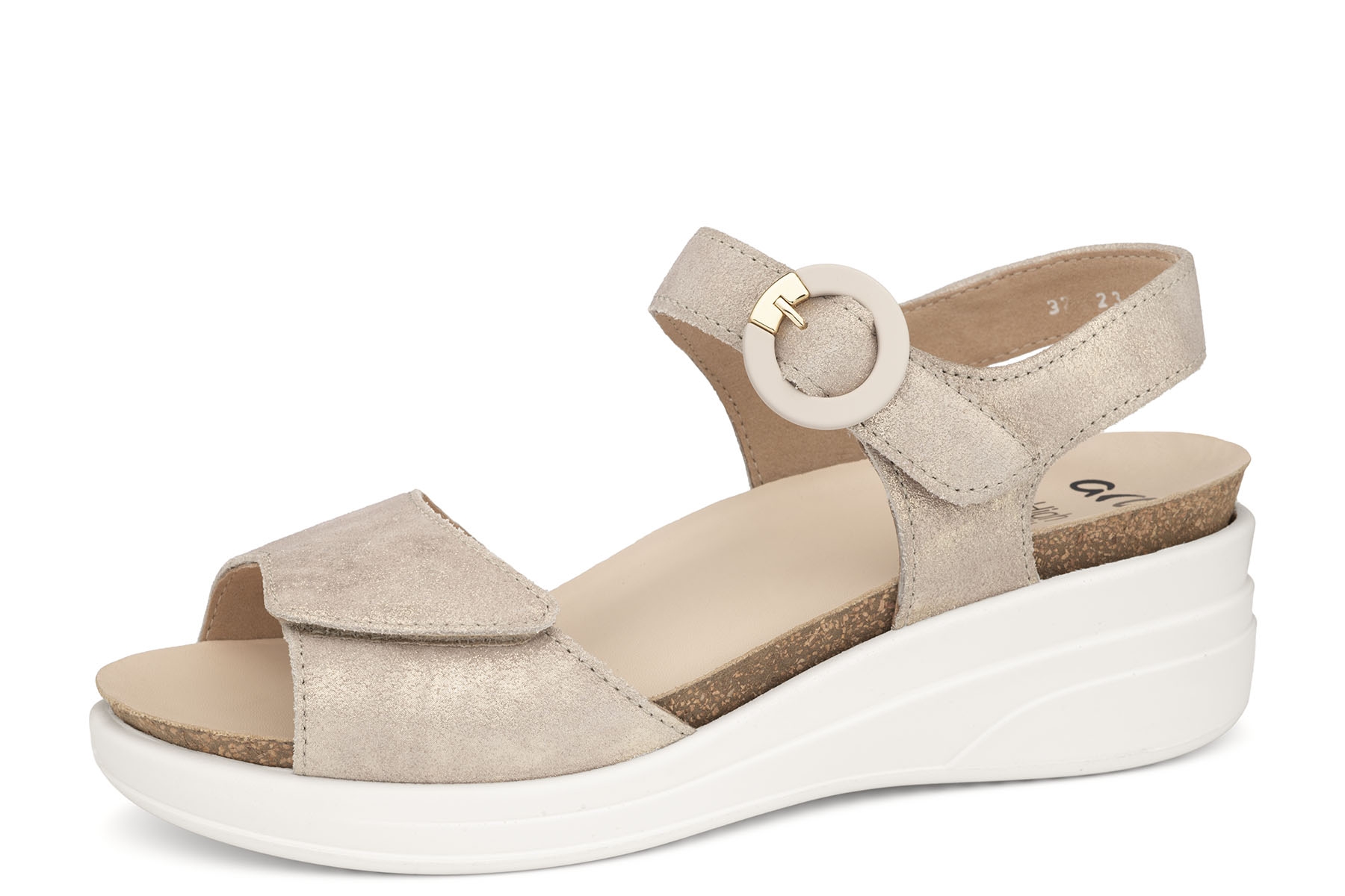 Ara Zurich-S 12-47004 05H High Soft wygodne sandały damskie wykonane ze skóry naturalnej; wyjmowane, amortyzujące wkładki - HighSoft z pelotą na płaskostopie poprzeczne; regulacja paskami na rzep; lekkie, elastyczne, antypoślizgowe podeszwy; tęgość H - na stopy szersze.