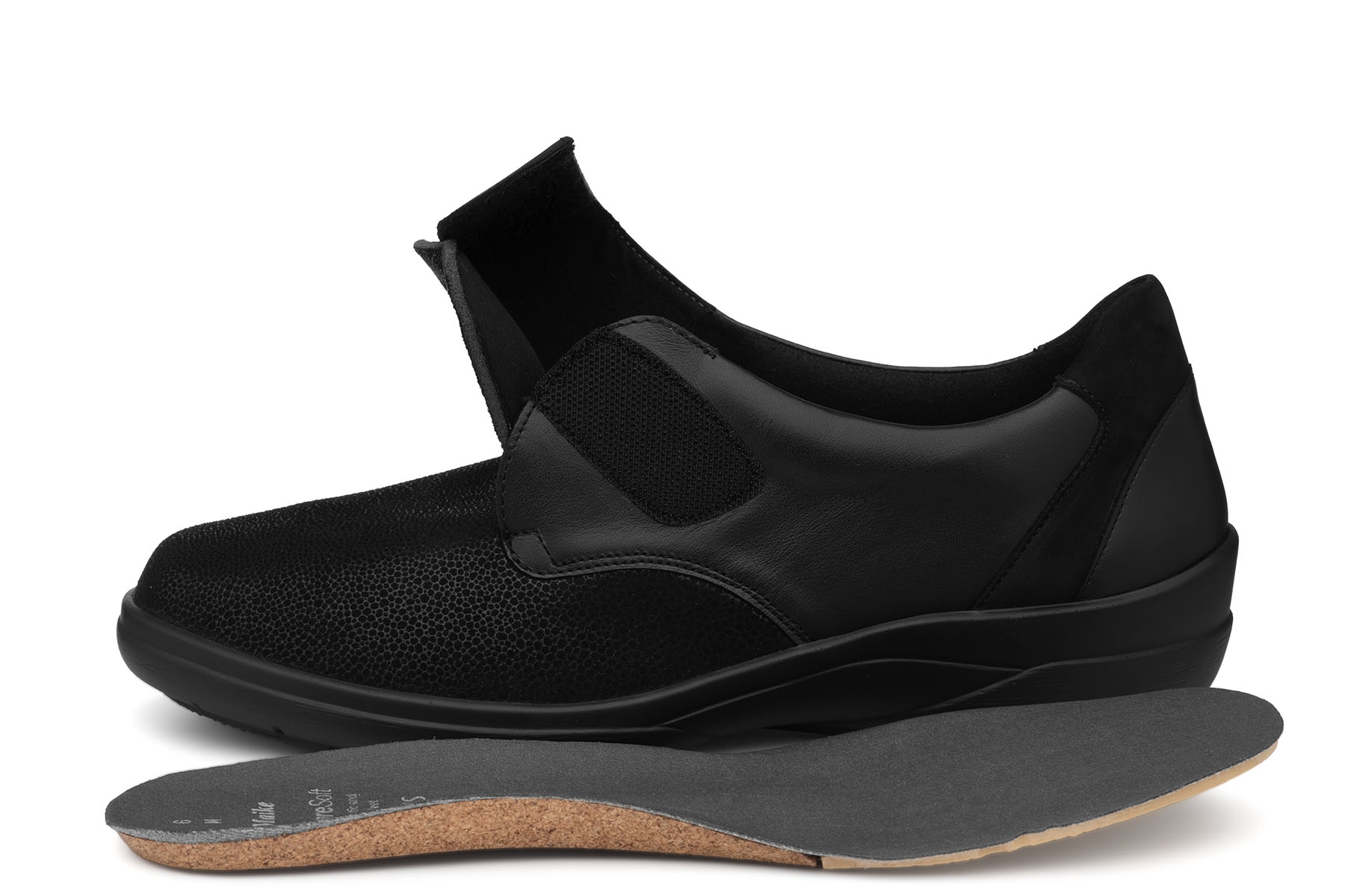 Możemy pochwalić się pozycją lidera na rynku obuwniczym w zakresie sprzedaży wygodnych butów do wkładek, szczególnie o podwyższonej tęgości. Dążymy do stałej rozbudowy oferty uczestnicząc w targach i wprowadzając nowe produkty odpowiadające oczekiwaniom klientów. W naszej ofercie znajdą Państwo wygodne buty do wkładek ortopedycznych na co dzień, do pracy, domowe jak również eleganckie obuwie wizytowe takie jak czółenka, półbuty, botki, sandały, klapki. Specjalizujemy się w obuwiu na stopy szerokie, z haluksami, palcami młotkowatymi, opuchnięte, z wysokim podbiciem. Posiadamy buty na stopy cukrzycowe oraz buty do wkładek ortopedycznych. Zawsze służymy poradą w zakresie doboru odpowiedniego obuwia oraz akcesoriów ortopedycznych, które również posiadamy w sprzedaży. Nasze 17 letnie doświadczenie w branży obuwniczej gwarantuje Państwu najwyższą jakość i wygodę. Współpracujemy tylko z najlepszymi europejskimi fabrykami.