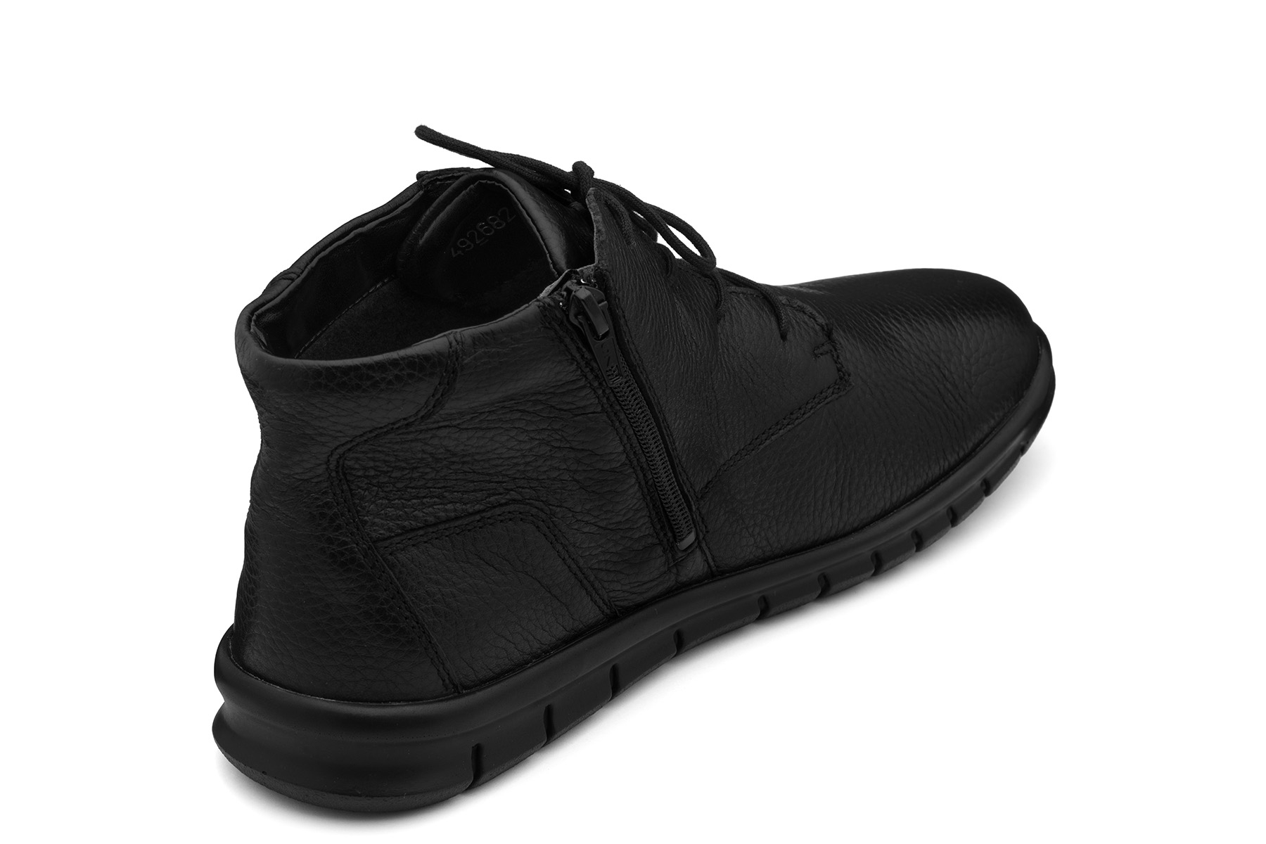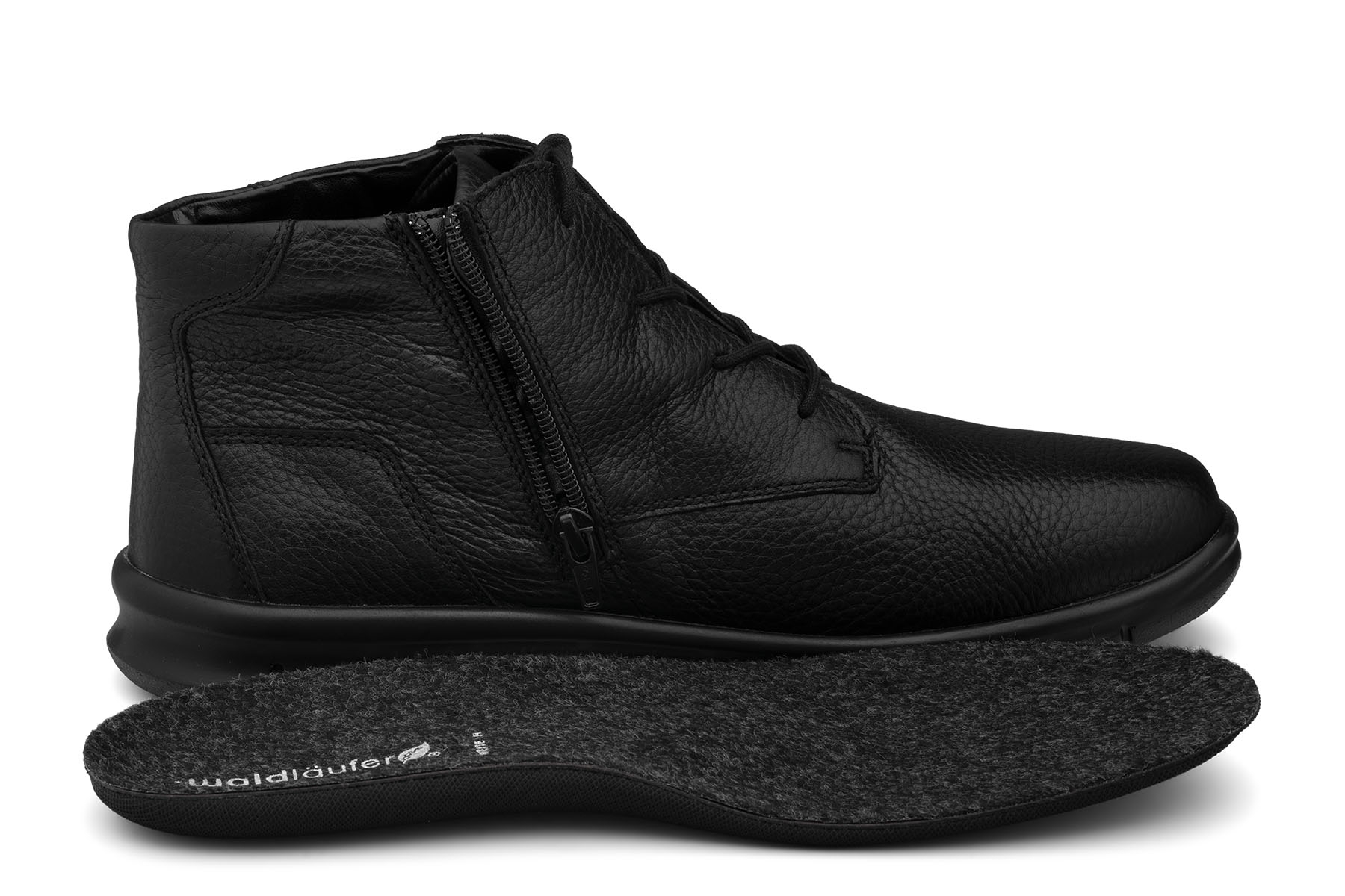 Waldlaufer Hector 366804 199 001 wygodne, zdrowotne męskie botki wykonane ze skóry naturalnej z jelenia; wyjmowane grubsze filcowe wkładki profilowane na płaskostopie podłużne i poprzeczne; elastyczne, antypoślizgowe podeszwy; tęgość H - polecane na stopy szersze.