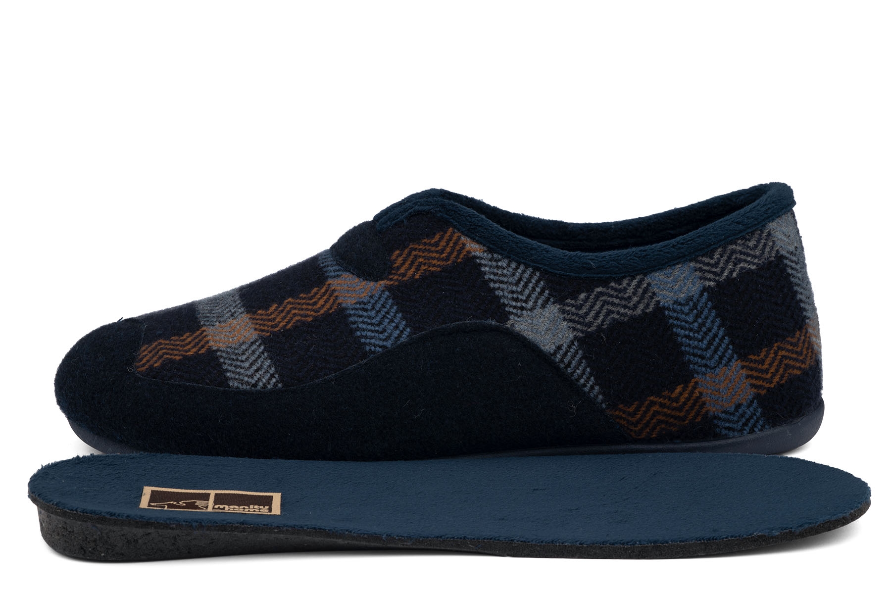 Manitu Home 240046 05 wygodne męskie pełne kapcie wykonane z miękkich, naturalnych tkanin; wyjmowane wkładki; elastyczne, antypoślizgowe podeszwy; tęgość H.