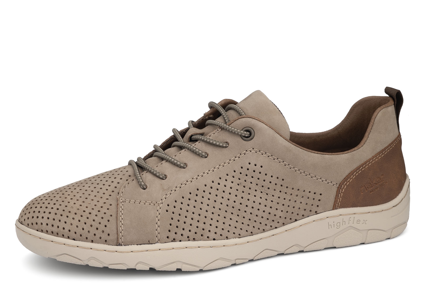 Rieker 08315-64 wygodne męskie półbuty wykonane z perforowanej skóry naturalnej; wyjmowane, piankowe wkładki pokryte tkaniną; elastyczne, antypoślizgowe podeszwy; tęgość G/H - na stopy średnio szerokie.