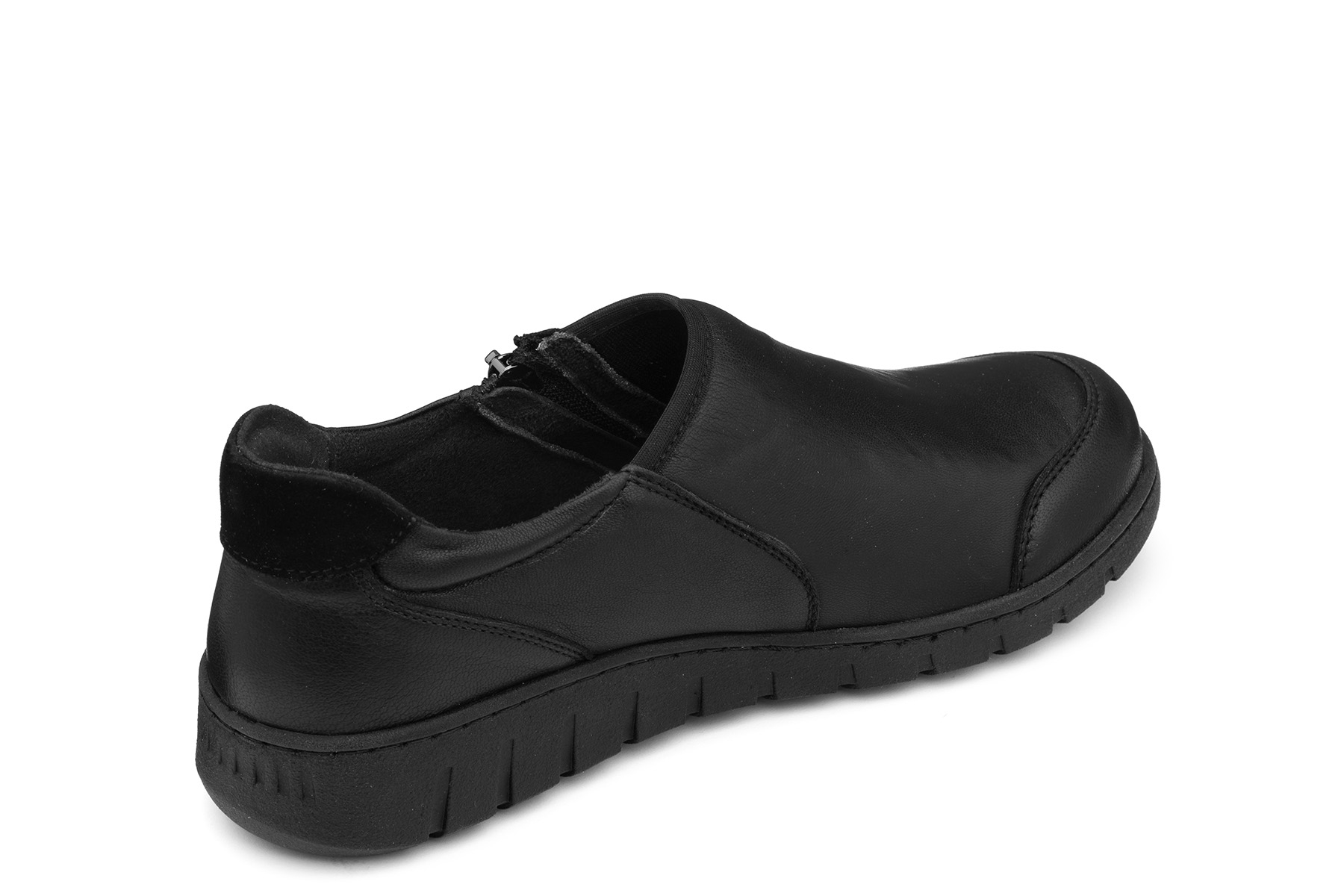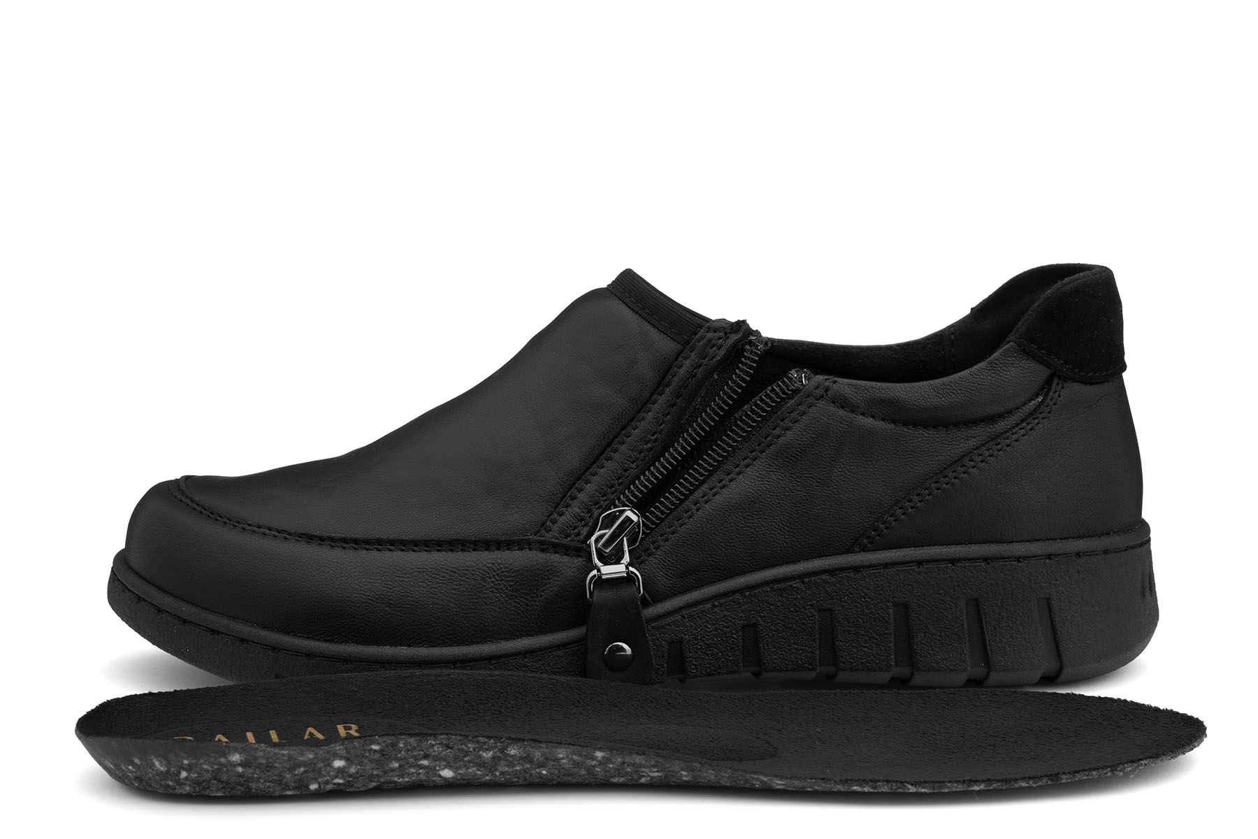Bailar Amelia wygodne półbuty damskie wykonane z połączenia miękkiej skóry naturalnej - licowej i elastycznej tkaniny w miejscu haluksów ; profilowane, amortyzujące wkładki z pianki pokryte tkaniną; elastyczne, antypoślizgowe podeszwy; suwak ułatwiający zakładanie; tęgość K - na stopy szerokie. Mogą być również na tęgość H dzięki regulacji podwójnymi wkładkami, które są w zestawie.