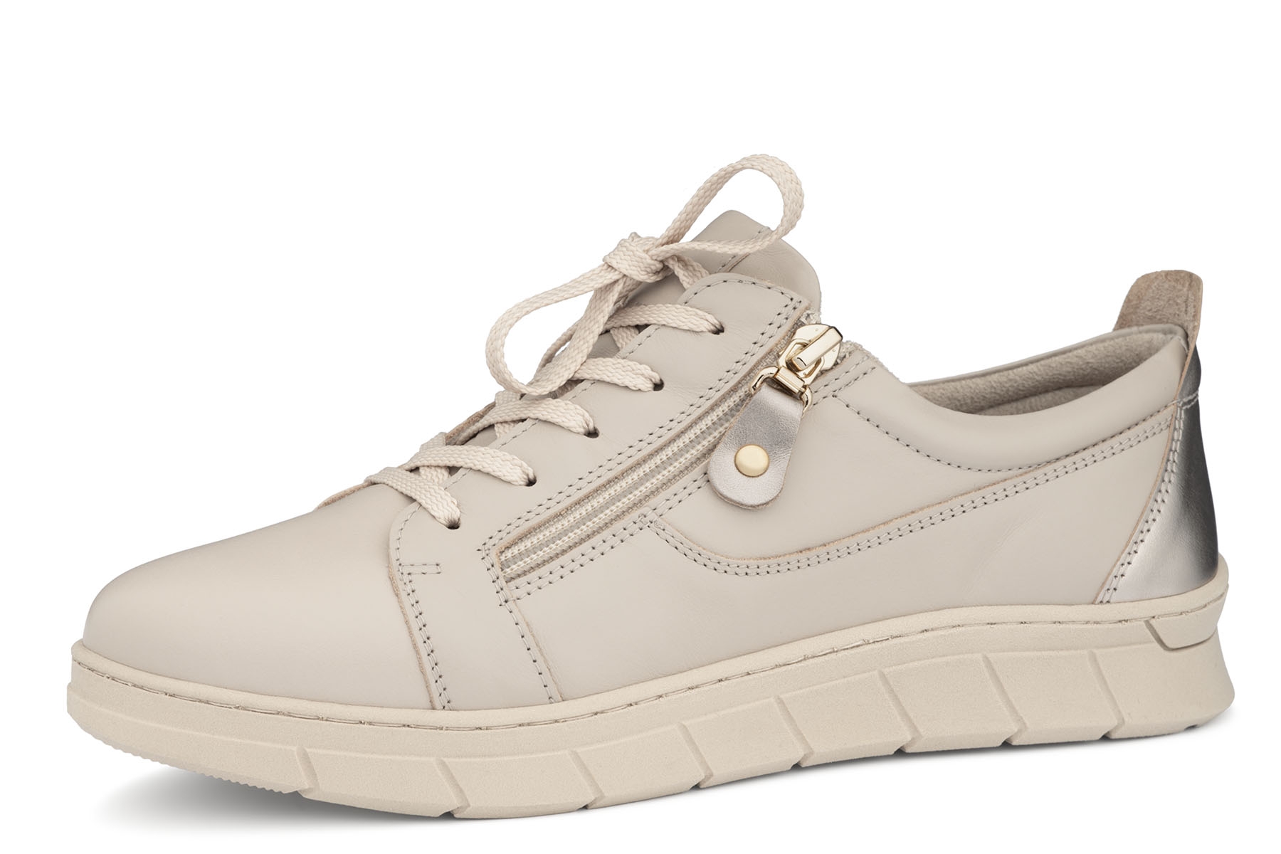 Bailar Clara wygodne półbuty damskie wykonane ze skóry naturalnej - licowej w kolorze beżowym ; profilowane, amortyzujące wkładki z pianki pokryte tkaniną; suwak ułatwiający zakładanie; elastyczne, antypoślizgowe podeszwy; tęgość K - stopy szerokie. Mogą być również na tęgość H dzięki regulacji podwójnymi wkładkami, które są w zestawie.
