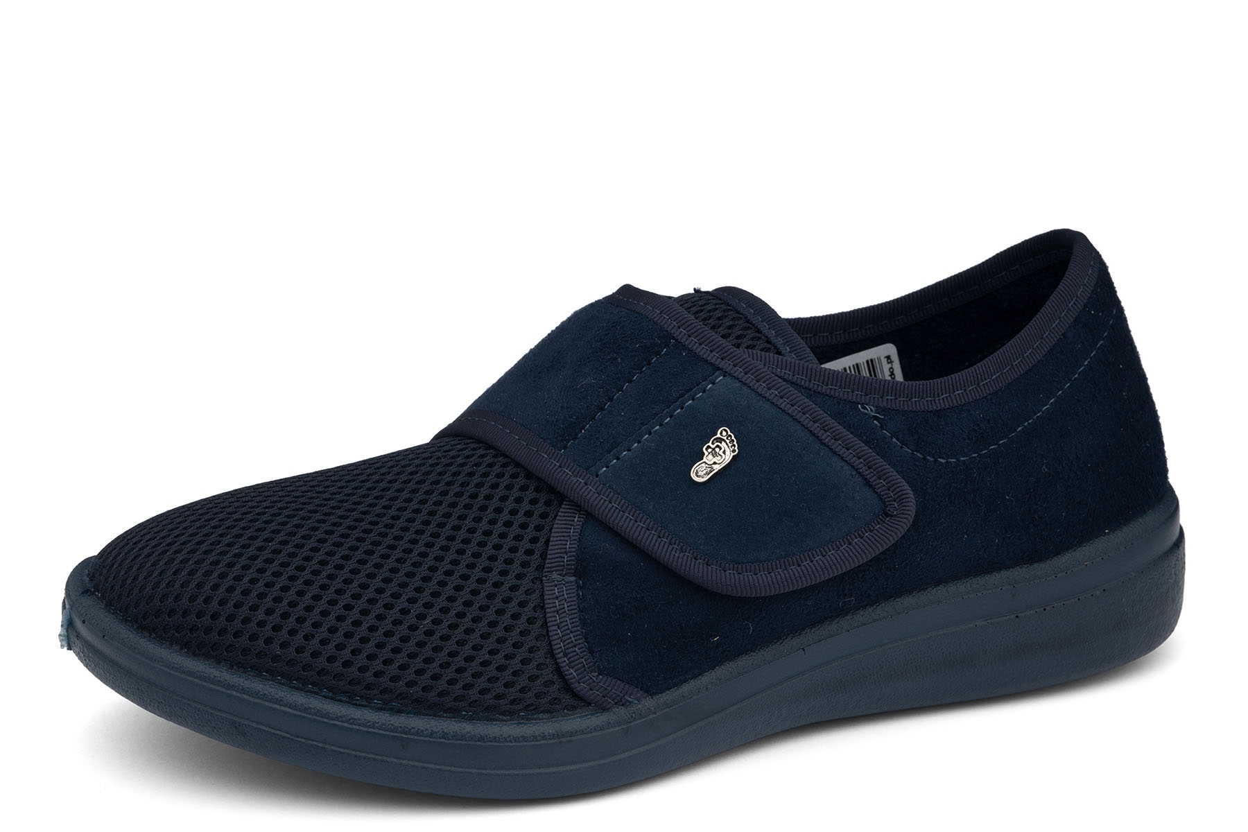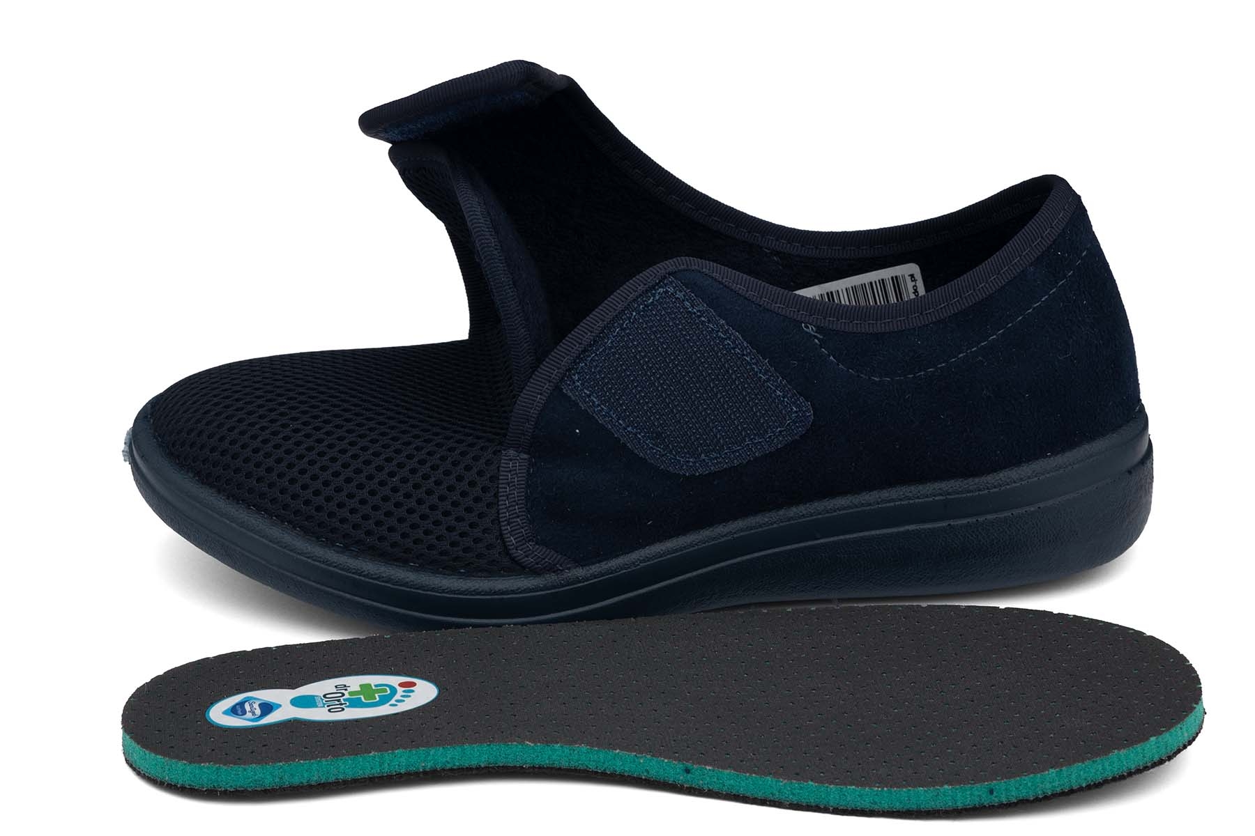 Befado Dr orto 088D001 wygodne zdrowotne damskie półbuty w kolorze granatowym, wykonane z miękkich tkanin o wysokiej jakości, może służyć osobom, których stopy są szczególnie wrażliwe na otarcia. Elastyczne, lekkie, dzięki zapięciu na rzepy łatwo dopasowuje się do kształtu stopy. Tęgość k - polecane na stopy szerokie.