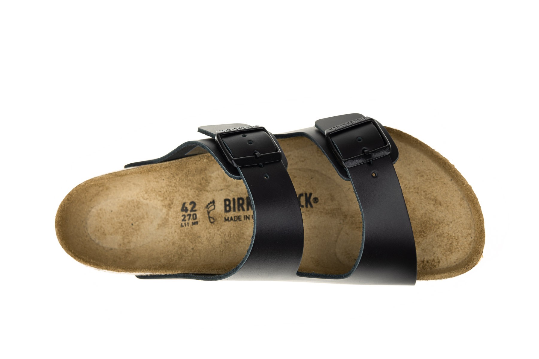 Birkenstock Arizona BS 051191 Regular Fit wygodne, zdrowotne klapki wykonane ze skóry naturalnej; skórzane z wkładki ortopedyczne profilowane na płaskostopie podłużne i poprzeczne; podpierają stopy w pięciu punktach; z oznaczeniem tęgości H - stopy o tęgości poszerzonej, jednak dzięki bardzo szerokiej podeszwie oraz regulacji klamrami pasują również na tęgość K - stopy szerokie.