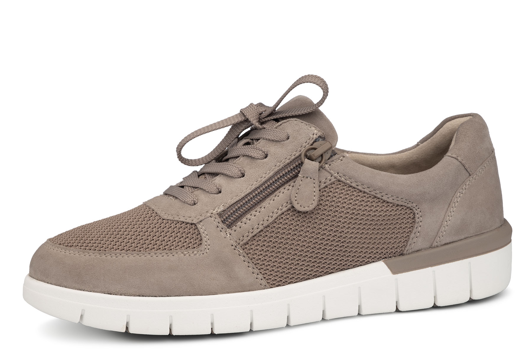 Caprice 9-23700-42 32F wygodne damskie półbuty wykonane z połączenia miękkiej skóry naturalnej i przewiewnej tkaniny; wyjmowane skórzane wkładki; elastyczne, antypoślizgowe podeszwy; suwak ułatwiający zakładanie; tęgość H - polecane na stopy szersze.
