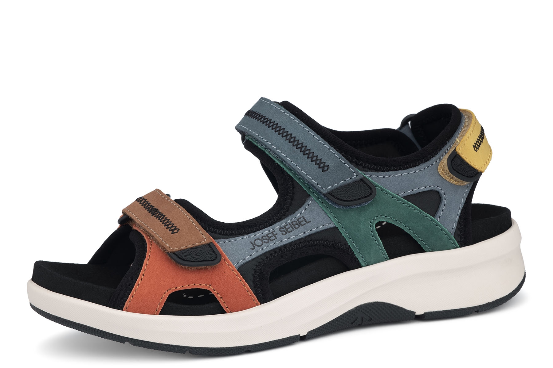 Josef Seibel Estelle 97302 TE380 900 wygodne sandały damskie wykonane ze skóry naturalnej ; wyjmowane, wkładki profilowane na płaskostopie podłużne i poprzeczne; regulacja paskami na rzep; elastyczne, antypoślizgowe podeszwy; oznaczone jako tęgość G, dzięki regulacji paskami mogą być również na stopy o tęgości H.