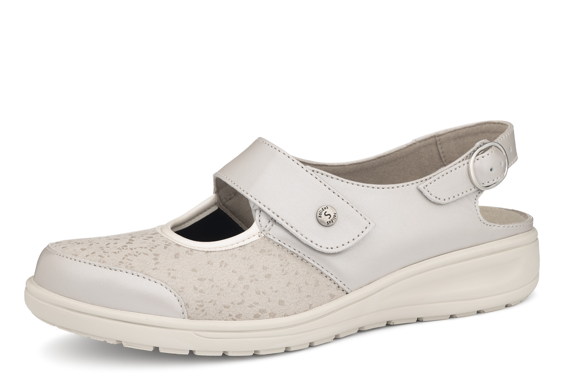 Solidus Hannah 75032 10300 wygodne, zdrowotne damskie sandały wykonane ze skóry naturalnej; elastyczny materiał w miejscu halluksów; wyjmowane skórzane wkładki profilowane na płaskostopie podłużne i poprzeczne; pasek na rzep ułatwia dopasowanie do stopy; z tyłu zapięcie na zatrzask; lekkie, antypoślizgowe podeszwy; tęgość H - na stopy szersze.