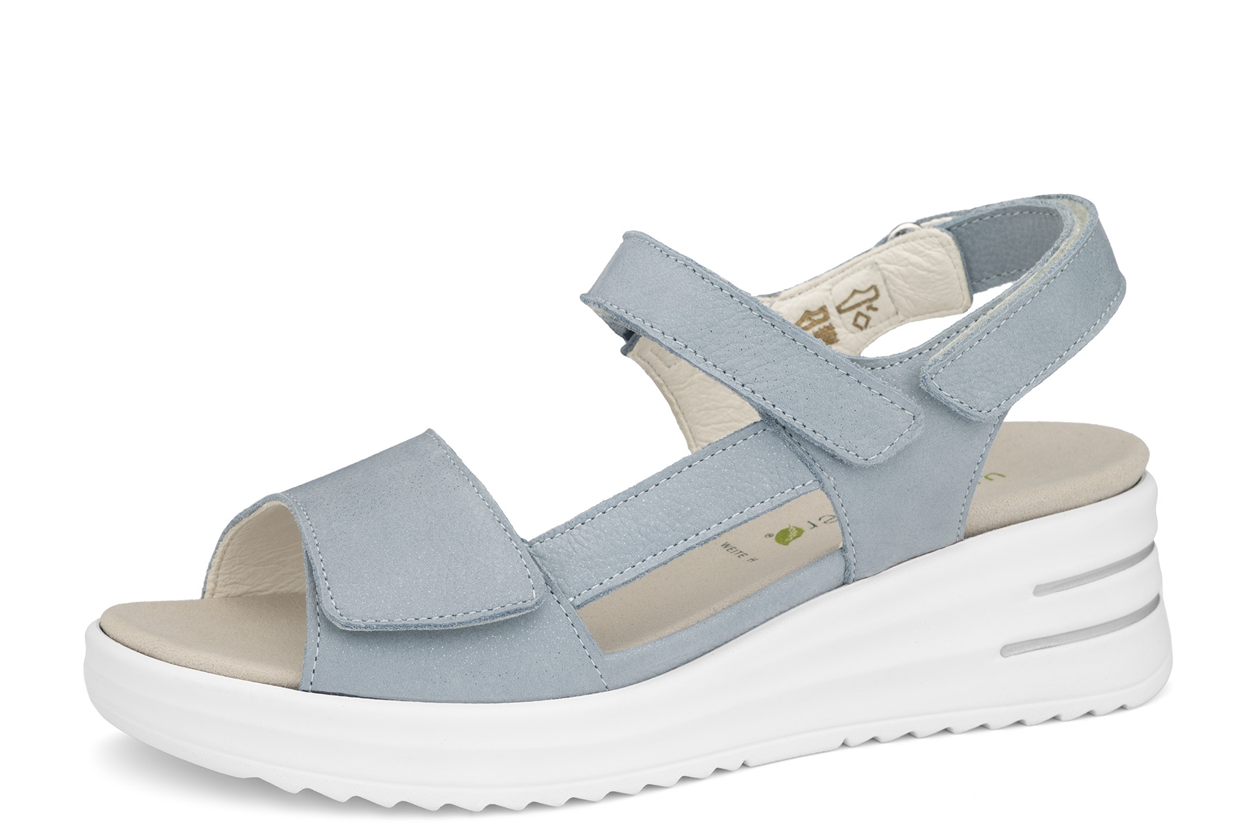 Waldlaufer H-Dina 795008 189 267 wygodne , zdrowotne sandały damskie wykonane ze skóry naturalnej ; wyjmowane wkładki profilowane na płaskostopie podłużne i poprzeczne; regulacja paskami na rzep; lekkie, elastyczne, antypoślizgowe podeszwy; tęgość H polecane na stopy szersze.