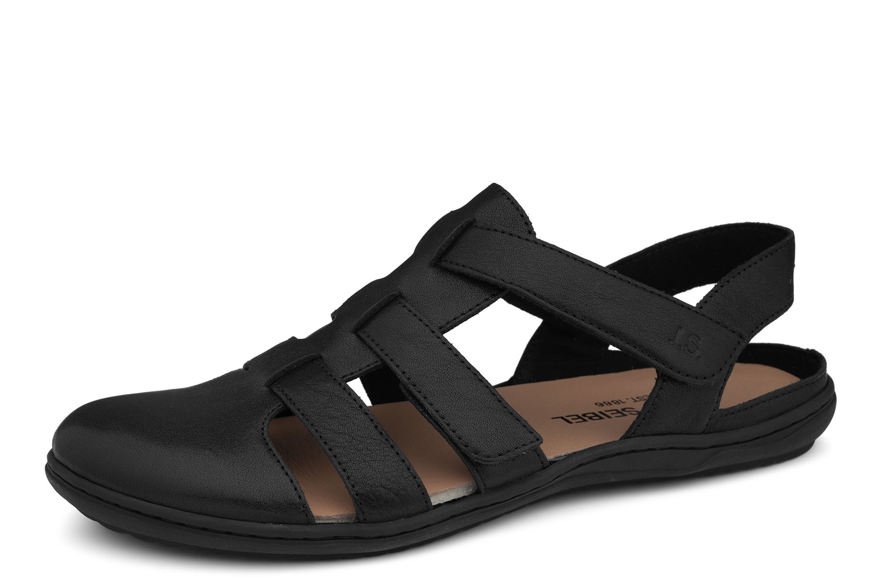 Josef Seibel Caitlyn 01 75801 002 105 wygodne damskie sandały wykonane ze skóry naturalnej - licowej; elastyczne, antypoślizgowe podeszwy; wyjmowane, miękkie skórzane wkładki; regulacja paskami na rzep; tęgość G - na stopy o normalnej tęgości.